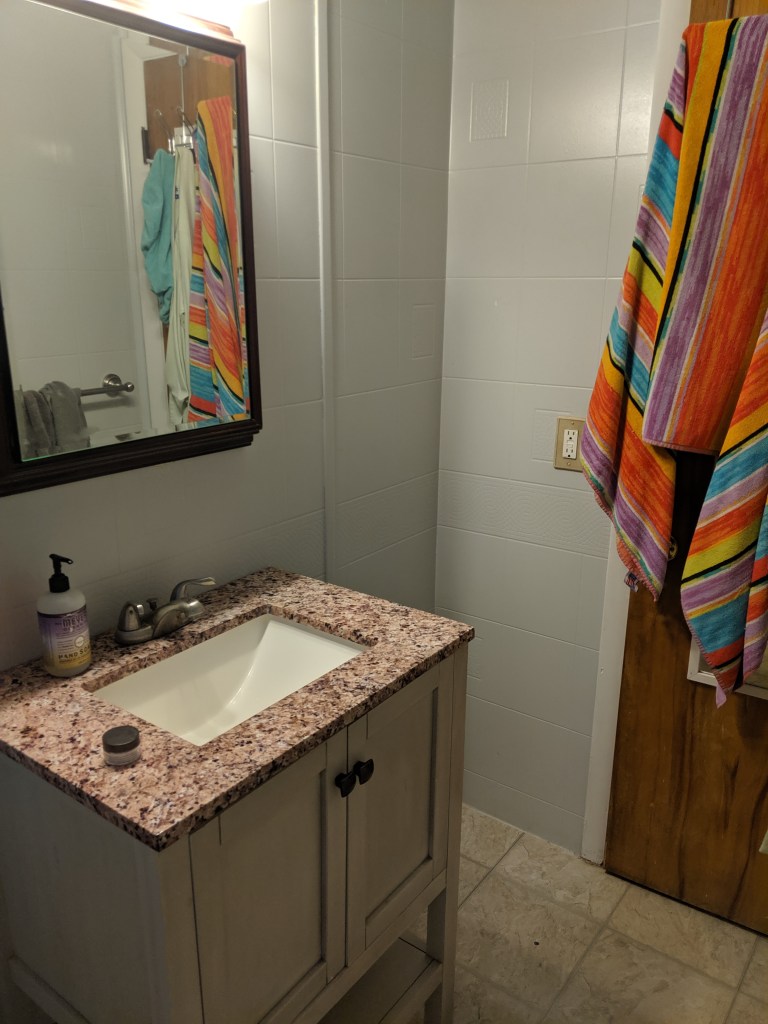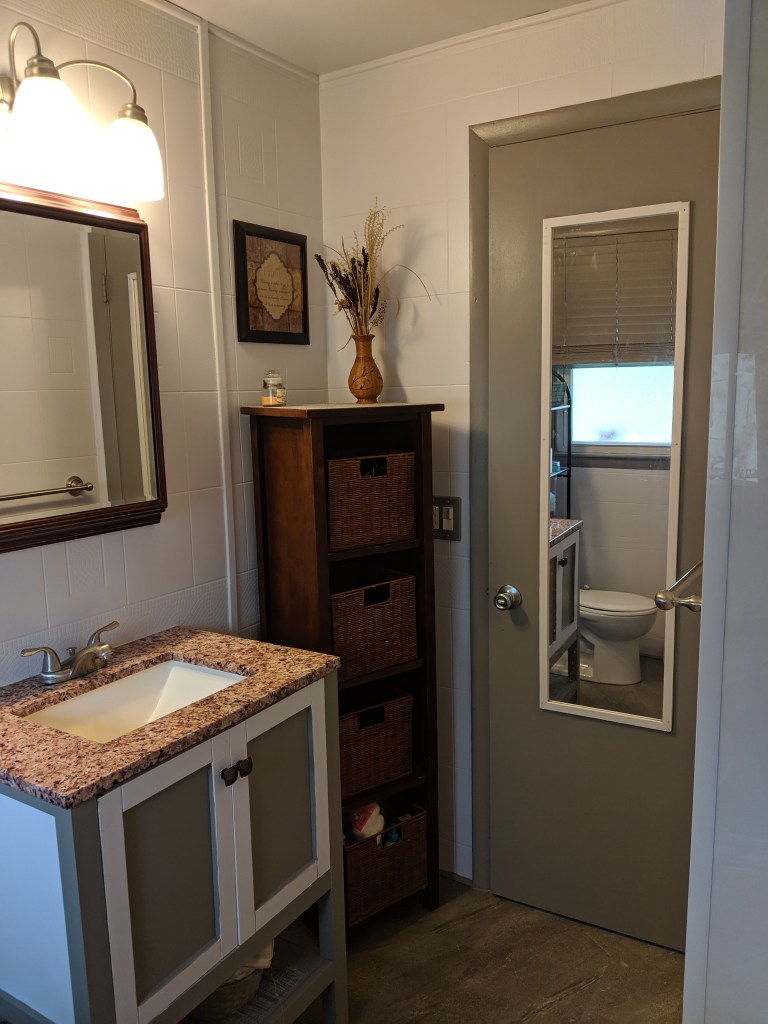 An easy inexpensive Bathroom redesign that packs a powerful punch and allows for more storage which buyers love!